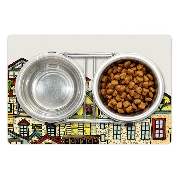 Cityscape Pet Mat For Food And Water Old Town Retro Art With Colorful Apartments Building Windows Balconies Chimneys Non Slip Rubber Mat For Dogs And Cats 18 X 12 By Ambesonne Walmart Com