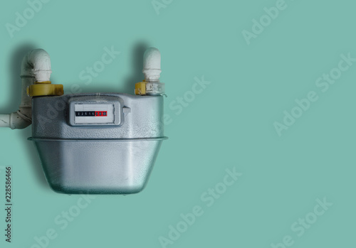 Gas Meter A Silver Gas Meter Isolated On A Green Pastel Background The Concept Of Gas Problems Price Increases Heating Of The Apartment And Hot Water Minimalist Concept Buy This Stock