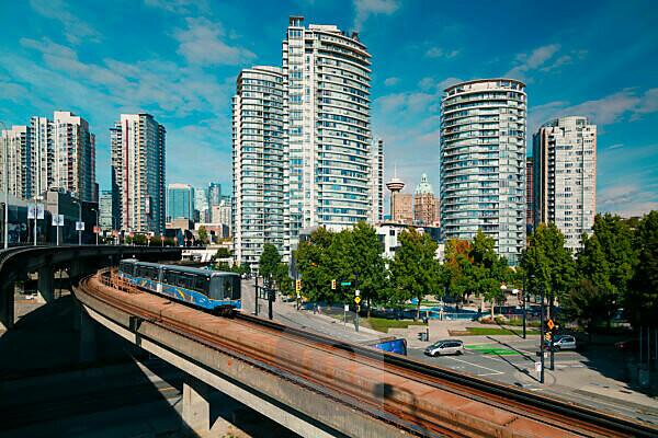 Bildagentur Mauritius Images View Of Sky Train And Urban Office Blocks And Apartments Vancouver British Columbia Canada North America